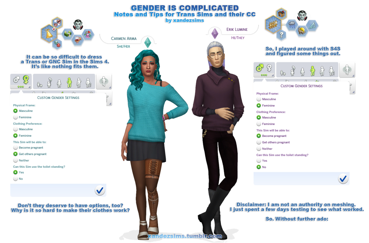 Xan here! What started as me trying to figure out a mesh turned into…this. I’m sure someone else has written guides on the topic, but I couldn’t find them, so I put this together. I made it mostly for my own reference–I keep forgetting which tags to use–but I thought I’d share in case anyone else might find it useful. (Requires: Sims 4 Studio)